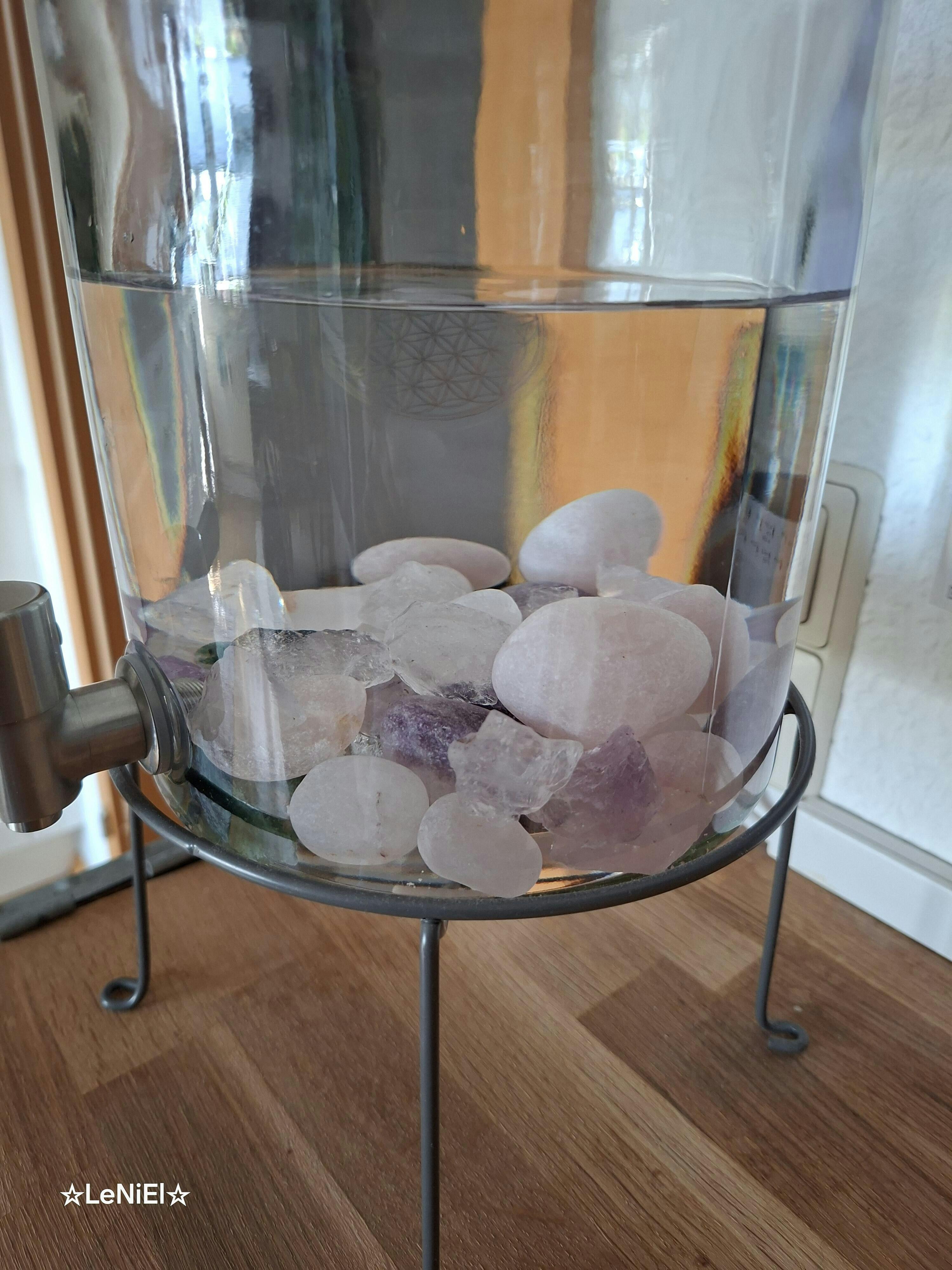 Hinweis: Lotus Vita hat diese Steine extra anfertigen lassen, um chemische Belastungen im Wasser zu vermeiden. Die meisten Hochglanz Edelsteine sind mit chemischen Prozessen Öl oder Wachs versiegelt. Dies sieht zwar gut aus, ist aber im Trinkwasser negativ, da chemische Mittel in das Wasser gelangen können!