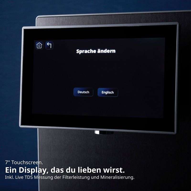 - Intuitiv und smart: 7 Zoll Touch Display, Echtzeit Wasserqualitätsanzeige, Eco Modus, Urlaubsmodus, Quick Change Filterwechsel.