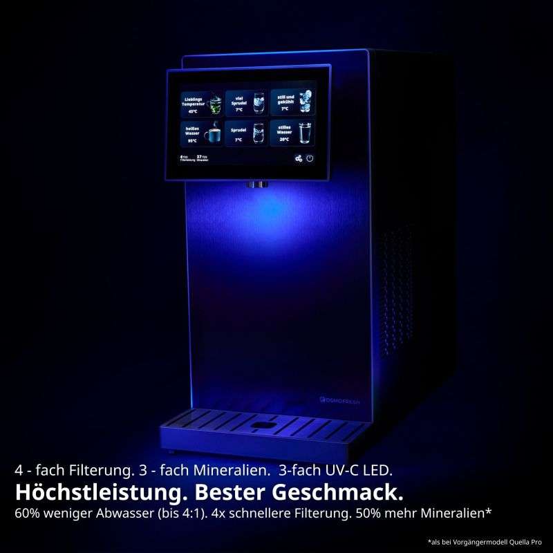 - Reinstes Wasser: 7 in 1 Filtration mit UltraPore Membran, Mineralisierung mit Calcium Magnesium Kalium Natrium und 3 mal UV C LED mit über 99,999 % Keimreduktion.