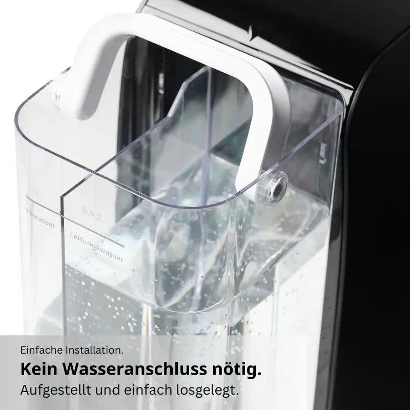 Flexibel einsetzbar: Kein Wasseranschluss notwendig, ideal für Zuhause und unterwegs.