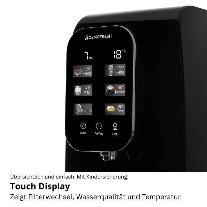 - Touchscreen erinnert an Filterwechsel und zeigt Wasserqualität.