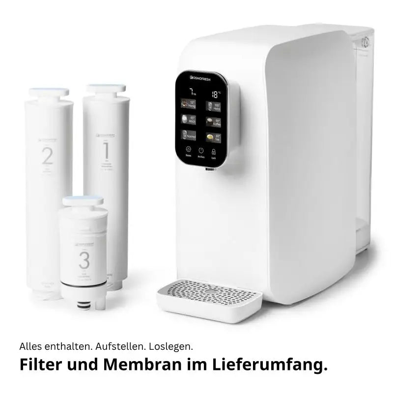 OsmoFresh Membran: Entfernt Bakterien, Viren, Medikamentenrückstände, Kalk, Fluor, Pestizide, Nitrat, Nitrit, Blei und PFAS-Verbindungen.
