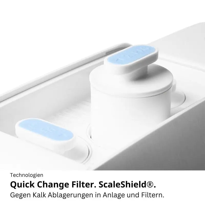 Die Quella Life ist eine stilvolle Auftisch-Osmoseanlage im weißen Design. Kein Wasseranschluss nötig, nur Strom. Ideal für Küche, Büro, Wohnzimmer, Schlafzimmer oder Wohnmobil. Einfach Wasser einfüllen, an den Strom anschließen und genießen.